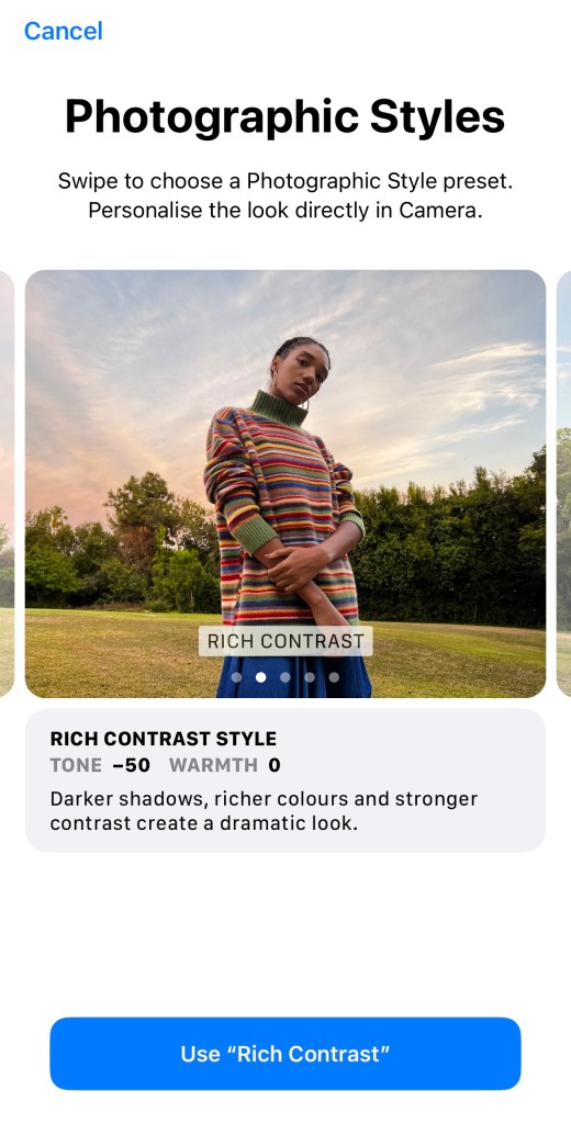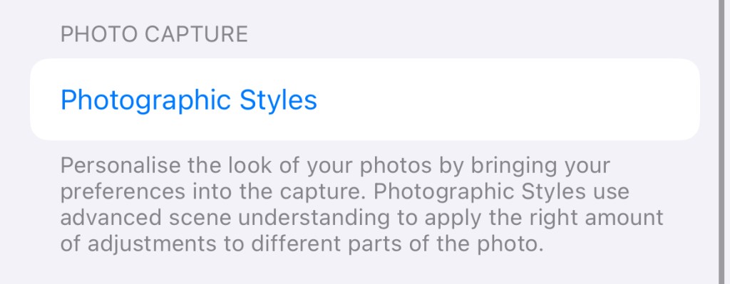 5 – next go to “Photographic Styles“6 – you can scroll through these, but I’d recommend using “Rich Contrast“. This setting pre-edits your pics as you take them!7 – next, open your camera and look across the options at the bottom until you find “exposure“. It’s a + and – sign inside a circle.8 – Set the exposure to +0.79 – The exposure will stay updated – you can see it at the top of your camera screen above the picture.